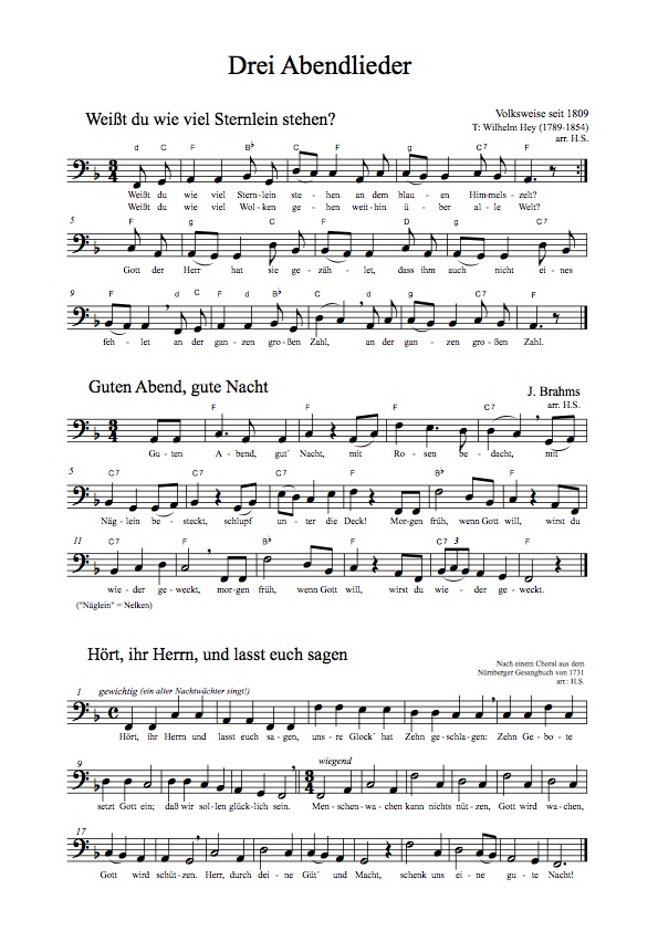 | Weißt du wie viel Sternlein stehen + Guten Abend + Hört, ihr Herrn | 27 |