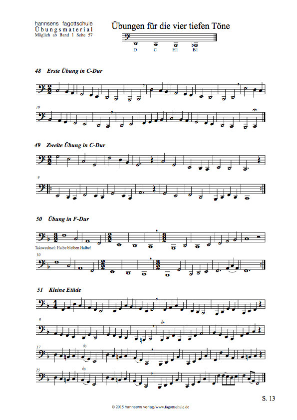 | Übungen für vier tiefe Töne | ab Bd. 1 S. 57 | 13 |